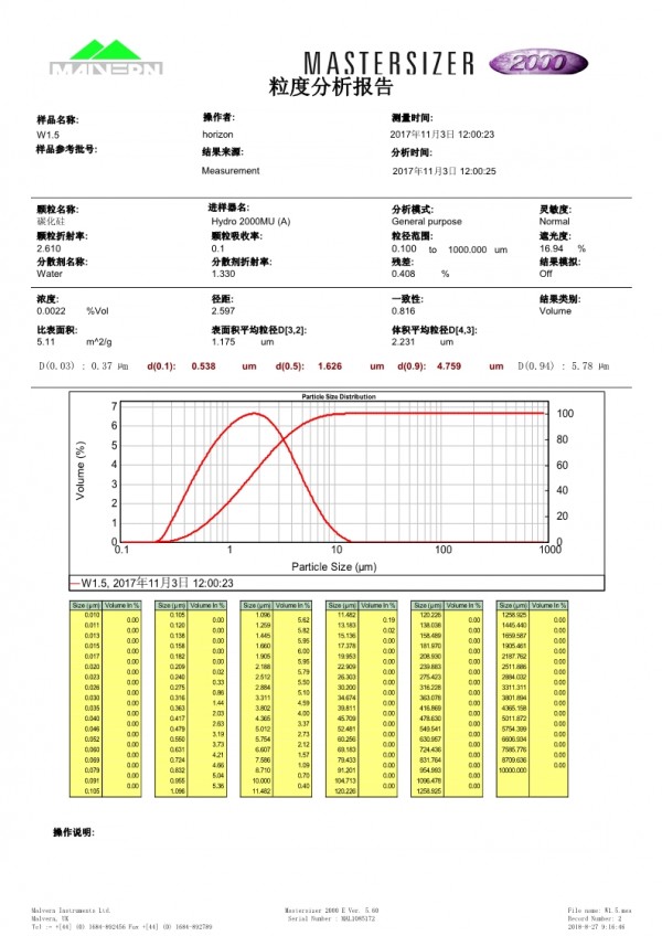 • 產品名稱: W1.5綠碳化硅微粉